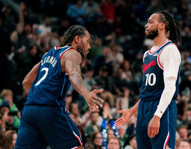 即将年满35岁的情况下,从上赛季联盟20名开外的水平,拉升到本赛季联盟前5,这进步幅度比年轻的文班亚马还要大,这是事实,但不是重点!我想强调两个内容,第一,从去年11月底复出后,伦纳德只缺席了6场比赛,其中三连客期间,是教练组谨慎起见送小卡先回洛杉矶养伤;打森林狼是脚踝伤势,之后打国王被肘击,被暗算,之后休战了马刺和鹈鹕两场。用小卡经纪人烤肉姐直播时话说,过去4个月,小卡太累了,但是他没抱怨过,一直在坚持。第二,加兰从3月份复出后,整体表现依旧很棒。